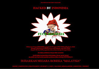 Perang dunia cyber kembali lagi. kali ini indonesia hampir mengeksekusi website website negara tetangga ini. asal mula dari propokasi yang di propokatori malaysia sehingga indonesia marah besar terhadap malaysia. saat saat yang di tunggu semua hacker indonesia bergerak dengan cepat membabi buta merusa website malaysia. alhasil malaysia harus bertekuk lutut di depan public dunia maya dengan rusaknya website departemen dan pemerintahan bahkan hampir seluruhnya terkena imbasnya.
